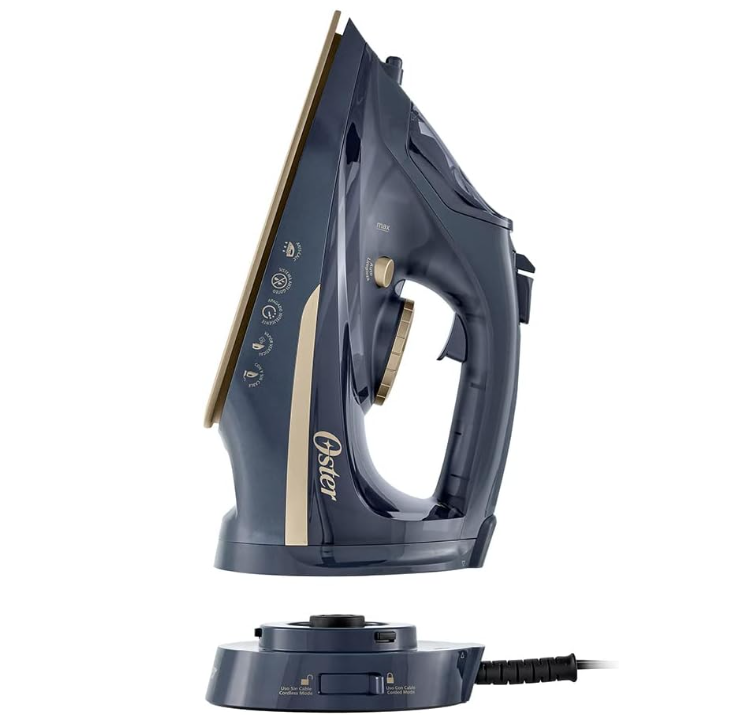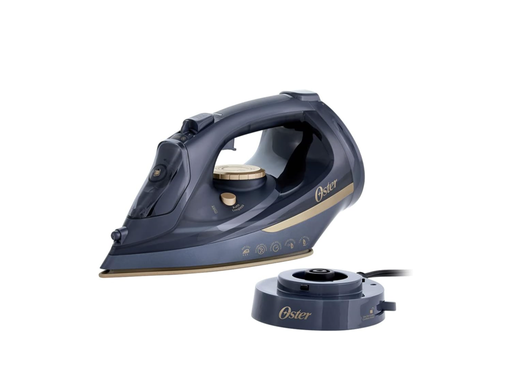 Home / Small Appliances / Oster Cordless Steam Iron 2 in 1Oster Cordless Steam Iron 2 in 1 Oster Cordless Steam Iron, 2 in 1 with Ceramic Soleplate Model # GCSTCC5000 Colour: Black 2-in-1 design provides a solution for any use Cordless mode offers maximum freedom of movement while ironing Corded mode is useful for large loads of laundry LED light indicates when the iron is ready to use or when it needs recharging in cordless mode Steam burst, variable steam, and vertical steam help remove tough wrinkles on all types of garments Intelligent 3-position auto shut-off for greater safety and energy savings Ceramic soleplate for smooth gliding over fabrics Precision tip allows ironing in hard-to-reach areas such as buttons, zippers, pockets, and collars Anti-scale technology and self-cleaning function provide better performance and durability Anti-drip system prevents water leakage to avoid staining clothes ‎Dimension: 34 x 13.8 x 17.2 cm We use cookies to ensure that we give you the best experience on our website. If you continue to use this site we will assume that you are happy with it. Ok Privacy policy
